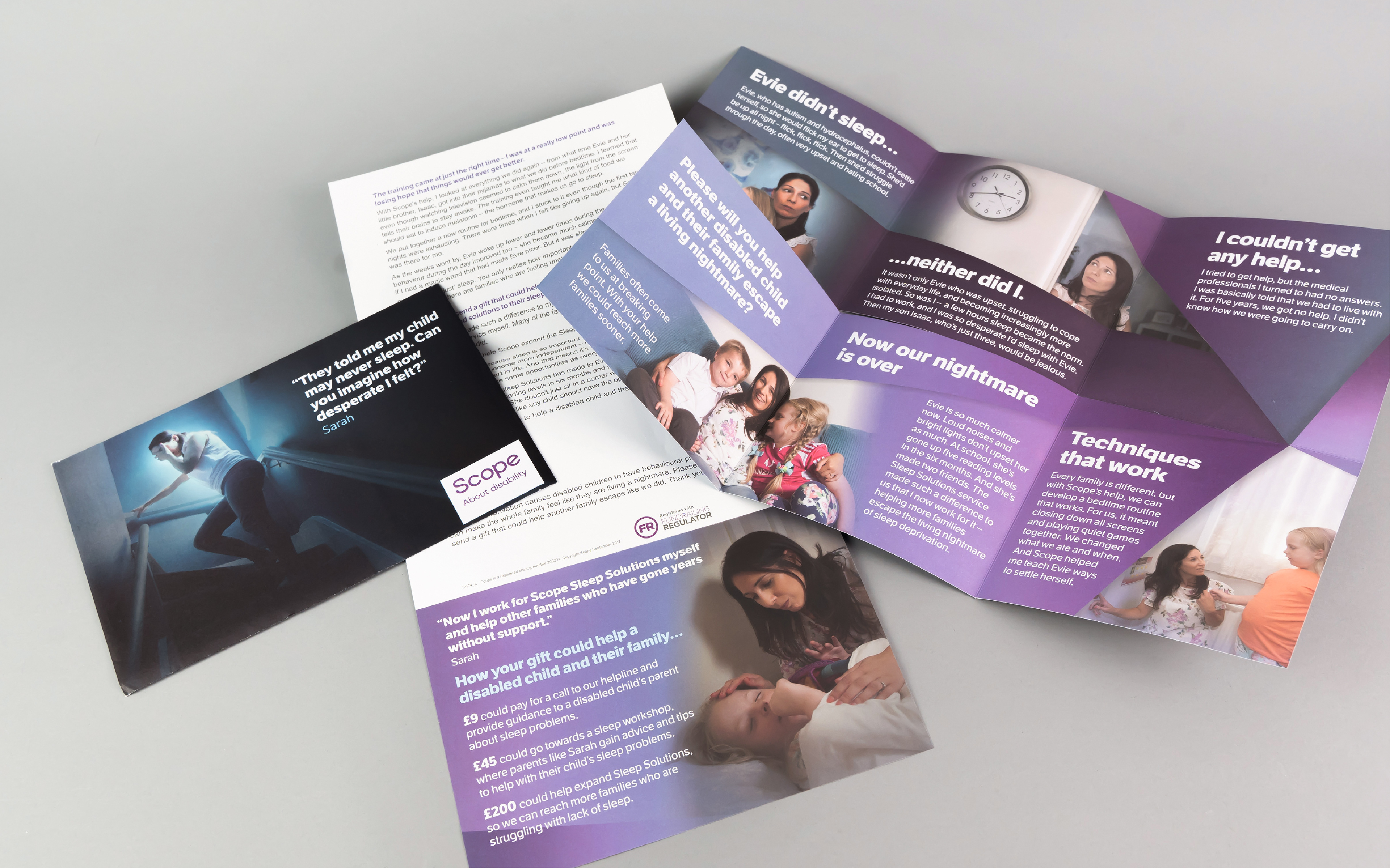 Sleep service themed fundraising mailing pack. Photography art direction, concept and initial design. Final design by Tim Mountford, photography by Paul Rowland.